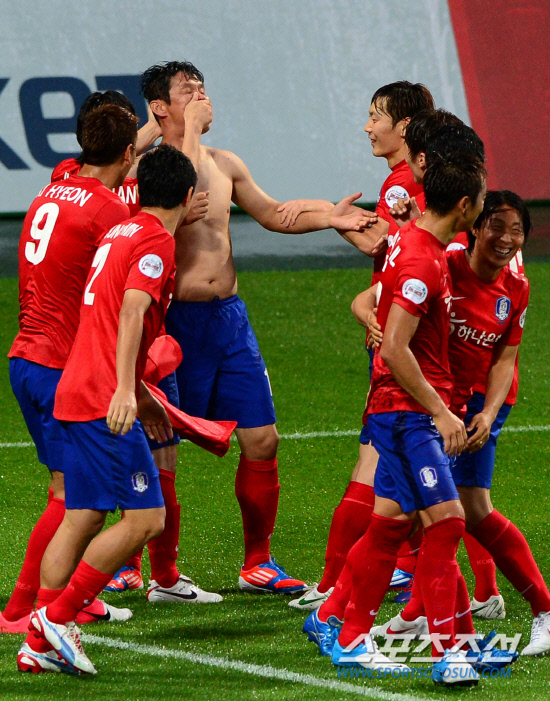 최용수(FC서울 감독)의 세리머니는 이날 최고의 화제를 모았다. 전반 25분 최용수는 깔끔한 마무리로 2002년 월드컵 미국전 실축의 한을 풀었다. 'K-리그 최고 악동 감독'의 선택은 '유럽 최고의 악동' 발로텔리(맨시티)였다. 최용수는 유로2012 독일과 이탈리아의 4강전에서 발로텔리가 그랬듯 유니폼을 벗었다. 그러나 아쉽게도 발로텔리의 찰진 근육을 따라가지는 못했다. 출렁이는 똥배(?)는 관중들을 포복절도하게 했다. 이후에도 패러디는 계속됐다. 아일랜드와 이탈리아전에서 골을 터뜨린 발로텔리의 입을 막은 보누치(유벤투스)처럼 모든 선수들이 달려와 최용수의 입을 막았다. 악동의 어디로 튈지 모르는 언행을 막기위한 동료들의 '착한 손'이었다. 재밌게도 가장 먼저 최용수의 입을 막은 것은 'FC서울의 제자' 최태욱의 손이었다.
