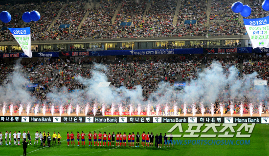 5일 K-리그 올스타전에는 과거와 현재 그리고 미래가 모두 녹아있었다. 감동 속 한국축구의 미래가 그려졌다. '화합의 장'이었다. K-리그 16개 구단 서포터스가 한 자리에 모였다. 팀 유니폼을 입고 경기장을 화려하게 물들였다. 일반 팬들과도 어우러졌다. 한 목소리로 '대~한민국'을 외치며 하나가 됐다. 10년 전 영광 재연은 2002년 한-일월드컵 4강 신화 멤버들의 몫이었다. 기대 이상으로 잘 해냈다. 그동안 올스타전은 팬들만을 위한 파티였다. 그러나 2012년 올스타전은 팬들 뿐만 아니라 선수들까지도 아름다운 추억을 만들고 돌아갈 수 있었던 무대였다.