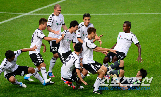 5일 2012년 K-리그 올스타 선수들이 '볼링 세리머니'를 선보이고 있다. 상암=송정헌 기자 songs@sportschosun.com