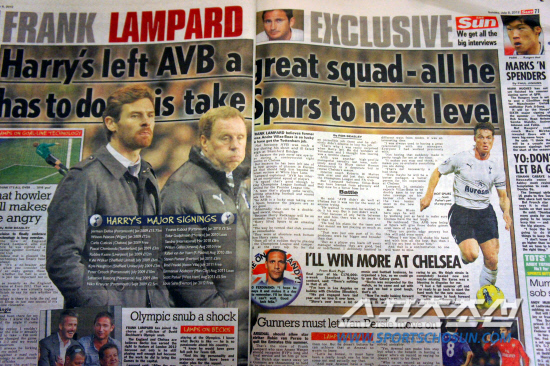 영국 일간지 더 선에 실린 박지성의 이적 소식. 오른쪽 상단에 박지성의 사진과 함께 이적소식을 간단하게 전했다. 런던=하성룡 기자