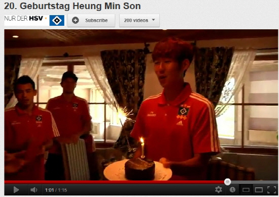 손흥민(함부르크)이 감동적인 생일 선물을 받았다. 지난 8일 함부르크는 자신들의 유튜브 채널에 손흥민의 생일 파티 소식을 전했다.