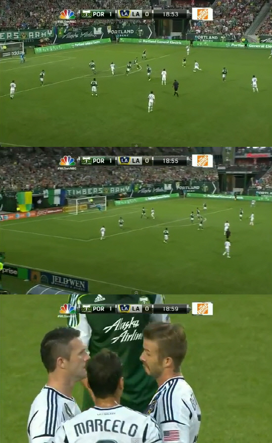 베컴은 지난달 30일 산호세 어스퀘이크와의 원정경기에서 경기를 지연시켰다는 이유로 상대 선수를 향해 공을 차는 바람에 1경기 출전정지와 벌금의 징계를 받았다. 경고누적으로 결장한 5일 필라델피아전을 포함해 최근 두 경기를 건너 뛴 후 참았던 골 본능을 폭발한 셈이다.