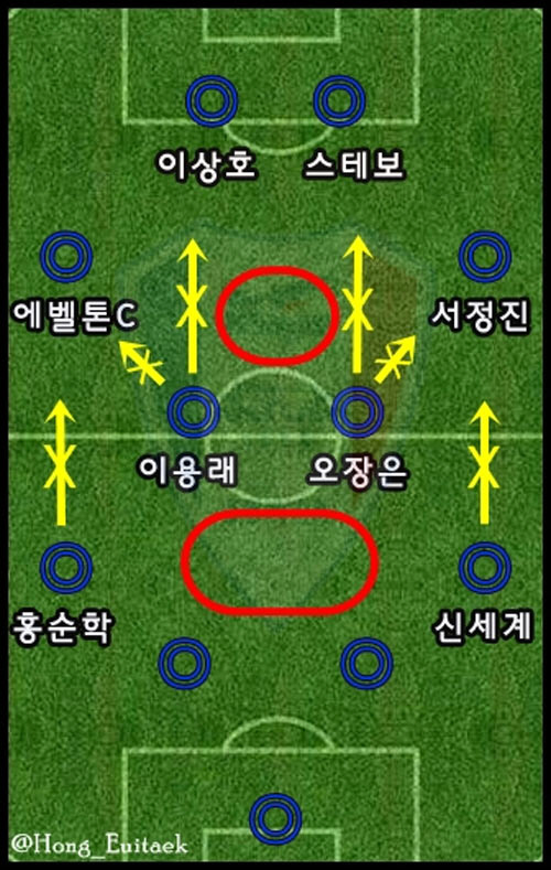 여기서도 로테이션에 대한 문제를 제기해보려 한다. 스플릿 시스템 14경기까지 더하면 아직도 2012시즌은 절반도 안 지났다. 44경기 중 남은 경기가 아직도 23경기인데 벌써 배터리에 빨간불이 들어온 선수들이 여럿 보인다. 앞서 언급한 오범석과 함께 이용래도 그런 케이스. 항상 평타 이상의 무난한 플레이는 보여주지만 그 활동량과 범위는 점점 줄어들고 있다. 이용래가 나가면 박현범이 뛰면 된다고? 여기에 부상자라도 속출하면 중앙만 무너지는 게 아니라 팀 전체가 무너질 수 있음을 확실히 인지해야만 한다.