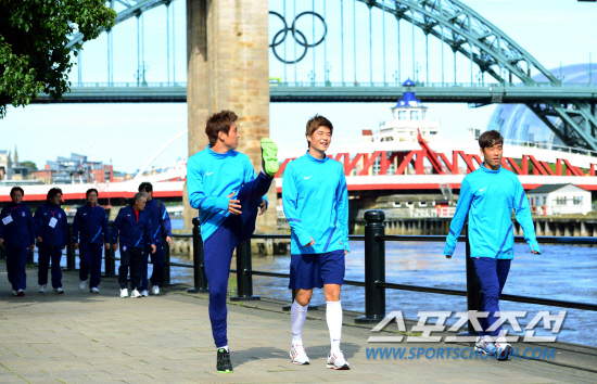 2012 런던올림픽 축구 대표팀의 구자철, 기성용, 박주영 등이 21일(현지시간) 뉴캐슬에 도착해 호텔 인근 타인(Tyne)강 강변로에서 산책으로 컨디션을 조절하고 있다.