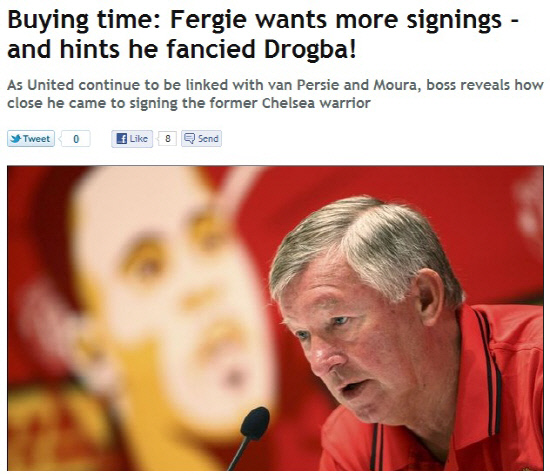 맨유는 현재 브라질의 원더키드 루카스 모우라 영입을 눈앞에 두고 있다. 루카스의 몸값은 2600만파운드에 이른다. 측면과 중앙을 모두 소화할 수 있는 루카스의 영입은 맨유 스쿼드에 깊이와 창의성을 더할 것으로 보인다. 라이벌 '아스널의 에이스' 로빈 판 페르시 영입전에도 가세한 상태다. 퍼거슨 감독은 공식적으로 판 페르시에 대한 러브콜을 보낸 상태며, 지인을 통해 판 페르시 영입에 대해 자신감을 보였다. 퍼거슨 감독은 "새로운 선수를 영입하는게 쉬운 일이 아니지만, 최선을 다하고 있다"고 했다.