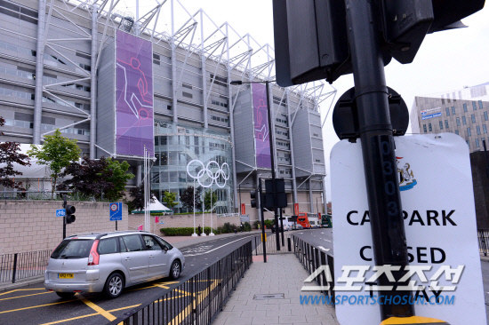 올림픽 축구대표팀의 첫경기가 열리는 뉴캐슬 유나이티드 홈구장인 세인트 제임스 파크 스타디움에 25일(현지시간) 혼잡을 우려해 주차장에 차를 주차할 수 없다는 표시가 붙어 있다.