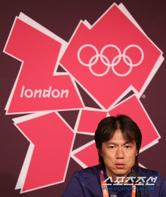 런던 올림픽 축구 남자B조 조별예선 대한민국 대 멕시코 경기를 하루 앞둔 25일 오후(현지시간) 영국 뉴캐슬 세인트 제임스 파크에서 홍명보 감독이 기자회견을 하고 있다.