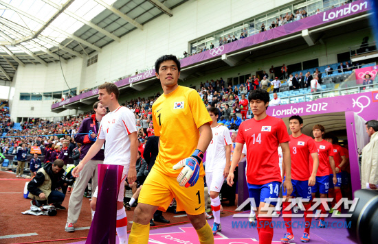 홍명보호가 29일 영국 코벤트리에서 스위스와 런던올림픽 조별리그 2차전 경기를 펼쳤다. 선수들이 시티오브코벤트리 스타디움에 입장하고 있다.