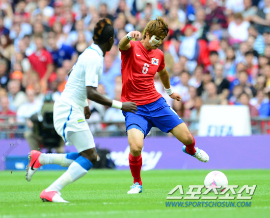 홍명보호는 비기기만해도 8강에 오른다. 가봉은 모아니면 도다. 무조건 이겨야 한다. 파상공세가 예상됐다. 정반대였다. 태극전사들이 주도권을 잡았고, 경기를 압도했다. 홍 감독은 처음으로 변화를 선택했다. 베스트 11 중 1명을 바꿨다. 남태희 대신 오른쪽 윙포워드에 스피드와 개인기가 뛰어난 백성동을 투입했다. 원톱은 박주영 그대로였다. 왼쪽에는 김보경이 섰다. 섀도 스트라이커에는 구자철, 더블볼란치(두 명의 수비형 미드필더)에는 기성용과 박종우가 호흡했다. 좌우 윙백은 윤석영과 김창수, 중앙 수비에는 김영권과 황석호가 포진했다. 골문은 정성룡이 지켰다.