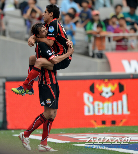 서울이 0-1로 끌려가다 승부를 원점으로 돌린 것은 25분 뒤였다. 최태욱의 슈팅이 상대 골키퍼 맞고 왼쪽으로 흘렀고, 데얀이 마침표를 찍었다. 서울이 주도권을 잡았다. 파상공세가 계속됐다. 후반 17분 역전골이 터졌다. 몰리나가 그림같은 왼발 프리킥으로 골망을 흔들었다. 5분 뒤에는 데얀과 몰리나의 압박이 주효했다. 수비수가 걷어낸 볼이 몰리나의 발끝에 걸렸고, 몰리나가 1대1 찬스에서 마침표를 찍었다. 서울은 5일 대전과 홈경기를 치르는 1위 전북과의 승점 차를 1점으로 줄였다. 승점 52점을 기록했다. 전북의 승점은 53점이다. 강원은 후반 41분 정성민이 만회골을 터트렸지만 재역전에는 실패했다.