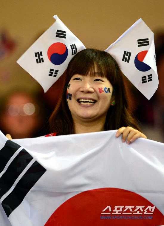 2012 런던 올림픽 축구대표팀이 4일(현지시간) 영국 카디프의 카디프 밀레니엄 스타디움에서 열린 영국 단일팀과의 8강전을 치루는 가운데 한국 축구 팬이 열띤 응원을 펼치고 있다.