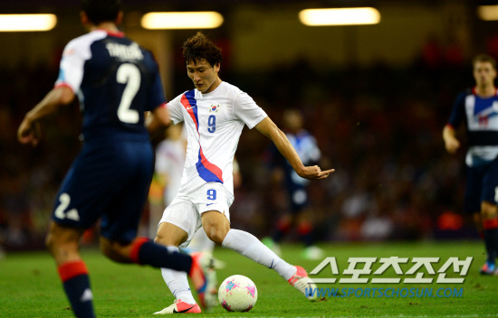 홍명보호가 4일 영국 카디프 밀레니엄스타디움에서 영국 단일팀과 8강전에서 격돌했다. 지동원이 전반 선취골을 성공시키고 있다.