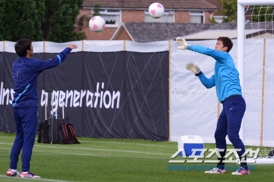 올림픽 축구대표팀 이범영이 9일(현지시간) 영국 카디프대학 훈련장에서 훈련을 하고 있다.