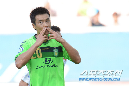 프로축구 전북 현대와 강원 FC의 경기가 지난달 22일 전주월드컵경기장에서 펼쳐졌다. 이동국이 전반 김정우가 얻어낸 페널트킥을 성공시키고 환호하고 있다. 이동국은 통산 128골을 기록했다. 전주=전준엽 기자 noodle@sportschosun.com