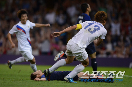 올림픽 축구대표팀 구자철이 10일(현지시간) 영국 카디프 밀레니엄 스타디움에서 열린 일본과의 경기에서 후반 골을 성공시키고 세리머니를 하고 있다.
