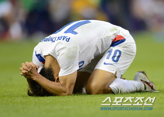 올림픽 축구 대표팀이 10일 오후 (현지시간) 영국 카디프 밀레니엄 스타디움에서 일본과의 2012 런던올림픽 축구 동메달 결정전에서2-0으로 완승 한국 올림픽 사상 첫 동메달을 획득했다. 값진 동메달을 획득한 선수들이 밀레니엄 스타디움에서 박주영 선수가 첫골을 넣고 기도하고있다