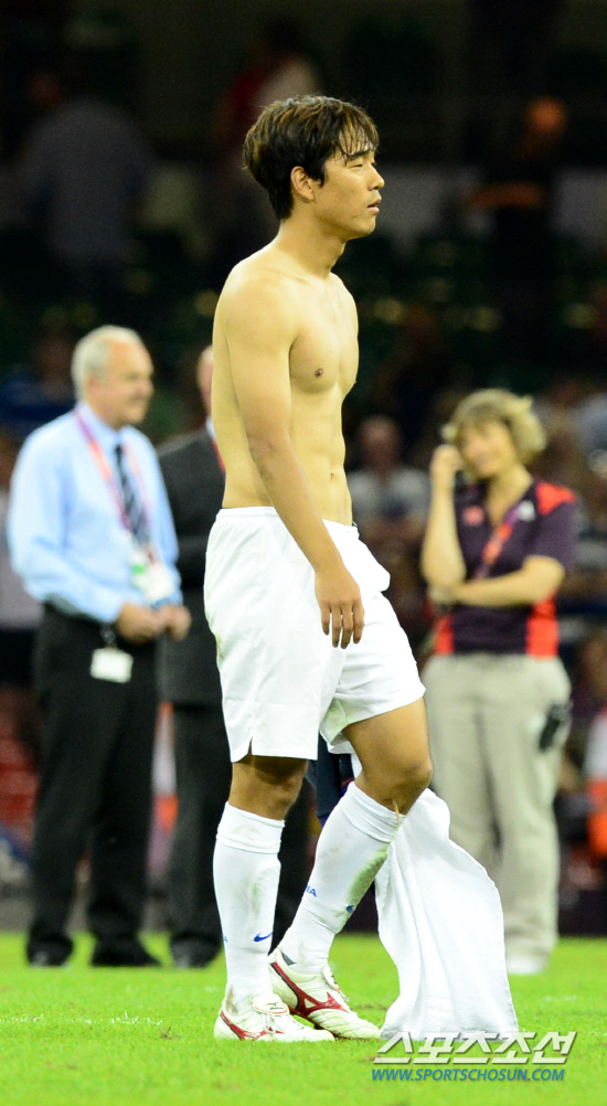 박주영이10일 오후(현지시각) 영국 카디프 밀레니엄 스타디움에서 열린 일본과의 경기에서 동메달을 딴 후 그라운드를 걸어나오고 있다.