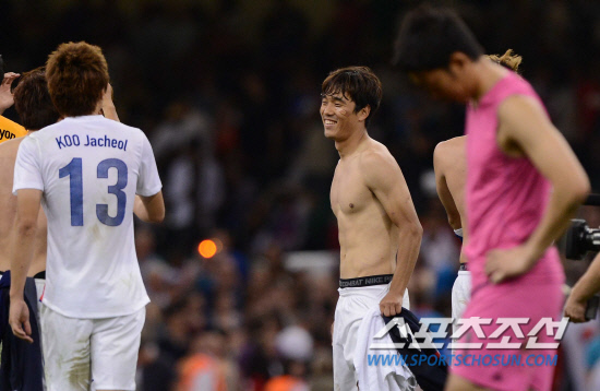 올림픽 축구대표팀 박주영이 10일(현지시간) 영국 카디프 밀레니엄 스타디움에서 열린 일본과의 경기에서 동메달을 획득하고 구자철과 기쁨을 나누고 있다.