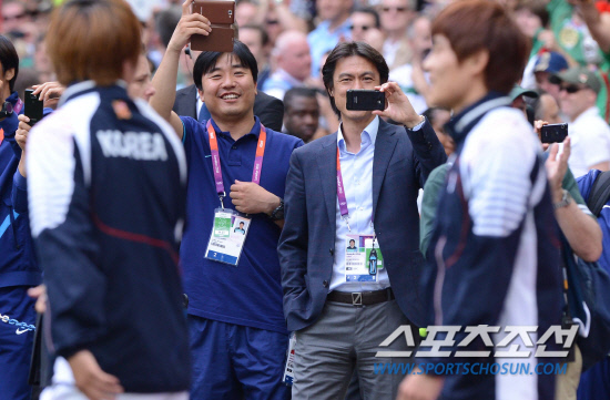 [런던포토] 홍명보 감독 '내가 다 찍어 놓을거야'