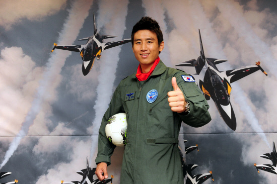 홍명보호의 주장 구자철이 16일 공군 홍보대사로 위촉됐다. 아버지가 끈이 됐다. 구자철의 아버지 구광회씨는 예비역 공군 원사다. 주력기인 F-16의 정비사로 근무하다 2002년 전역했다. 구자철은 '모태 공군'이다. 전투비행단에서 어린 시절을 보내며 하늘을 동경했단다. '피'는 진했다. 공군 장병들이 가장 좋아하는 축구선수로 구자철이 꼽혔다.