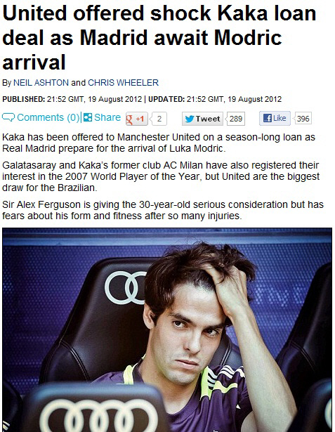 맨유가 카카에 임대제의를 한 것으로 알려졌다.