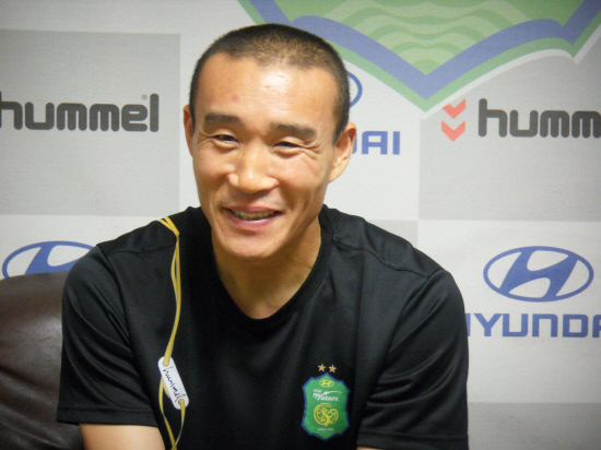 하지만 그라운드에서 펼치는 그의 선방쇼만 보고 있으면 41세란 나이는 숫자에 불과하다. "잘 한 것도 없는데 인터뷰라뇨?" 19일 전북-제주전(3대3 무)에서 무실점 경기를 하지 못한 아쉬움에 대한 자책이었다. 그만큼 매 경기마다 팀 성적에 강한 책임감을 느끼고 있었다. 팀 내 최고참이기 때문이다. 다른 이유도 있었다. 생애 첫 우승컵을 들어올리고 싶은 꿈을 꾸고 있었다. 푸근한 미소를 가진 전북의 수문장 최은성. 그를 20일 전북 완주군 봉동읍에 위치한 선수단 숙소에서 만났다.