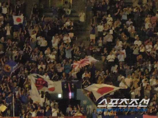 | ◇이날 대부분의 일본 팬들이 일장기를 들고 경기장을 찾았으나, 욱일승천기가 곳곳에서 모습을 드러내면서 눈살을 찌푸리게 했다. |