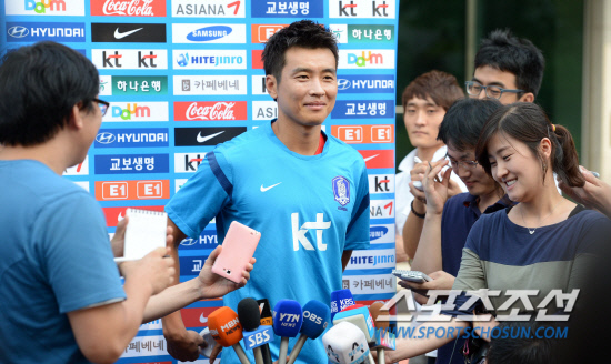 우즈베키스탄과의 브라질 월드컵 아시아지역 최종예선 3차전을 앞둔 최강희호가 3일 파주NFC에 소집됐다. 소집후 진행된 훈련에 앞서 이동국이 취재진과 인터뷰를 하고 있다. 파주=허상욱 기자 wook@sportschosun.com