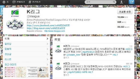 연맹은 트위터와 페이스북(facebook.com/withKLEAGUE)을 통해 홍보 프로젝트(K리그를 알려라)도 진행하고 있다. 안정환 K-리그 명예 홍보팀장이 부과하는 다양한 임무들을 팬들이 직접 수행해 SNS로 K-리그의 재미를 퍼트리는 것이다.