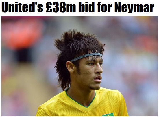 맨유가 '브라질의 신성' 네이마르에 깜짝 제안을 했던 것으로 알려졌다. 이적료는 무려 3800만파운드다.