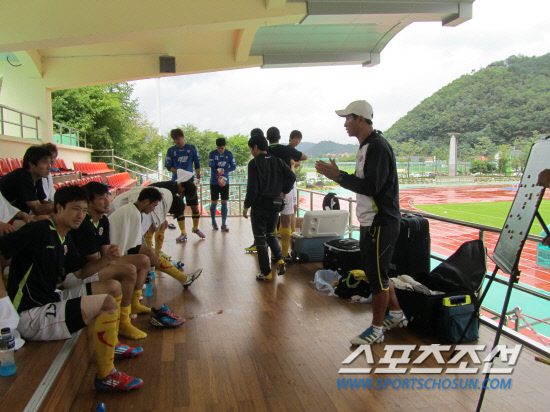 지난 8일 강원도 양구군 양구종합운동장에서 빗속에 펼쳐진 상지대와의 연습경기, 신태용 성남 일화 감독은 틈만 나면 '돌격! 앞으로'를 외쳤다. 무의미한 백패스에 대해 가차없는 불호령이 떨어졌다.