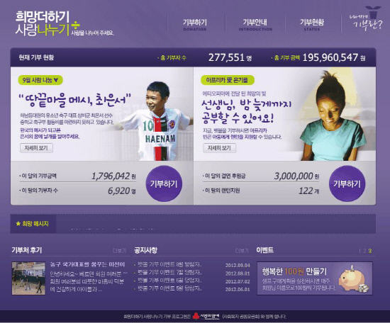 이번 기부 캠페인은 '희망더하기 사랑나누기' 홈페이지(http://donation.betman.co.kr/)를 통해 30일까지 참여할 수 있다.