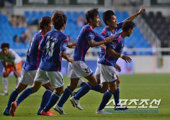 그냥 물러날 대전이 아니었다. 선수비 후역습 전략을 편 대전은 후반 24분 승부를 원점으로 돌렸다. 김형범의 프리킥을 김병석이 재치있는 헤딩슛으로 골네트를 갈랐다.