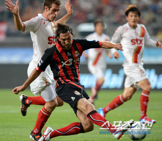 FC서울의 외국인 공격수 데얀(31)은 K-리그 한 시즌 최다골 기록 달성을 눈앞에 두고 있다. 타이기록까지 3골이 모자란다. 2003년 김도훈(성남 코치)의 28골(40경기 출전·경기당 평균 0.70골)이 최고 기록이다. 당시 정규리그는 단일리그로 팀당 44경기(3라운드)를 치른 후 플레이오프 없이 우승팀과 정규리그 득점왕을 가렸다. 올해 환경이 똑같아졌다. 포스트시즌이 사라졌다. 팀당 44경기씩을 치른 후 우승팀이 결정된다. 개인 기록도 마찬가지다. 데얀은 32경기에서 25골을 뽑았다. 경기당 평균 0.78골을 터트렸다. 11경기가 더 남았다. 현재의 기세가 계속되면 산술적으로 7골을 더 터트릴 수 있다. 김도훈을 넘어 한 시즌 30골 돌파도 현실이 될 수 있다.