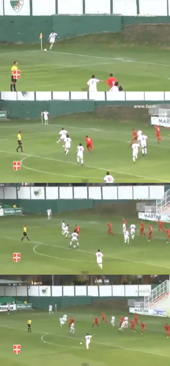 키커는 아크서클 방향으로 공을 낮게 깔았다. 일직선으로 줄 지어 선 세르비아 선수 3명은 공을 받을 듯 하면서 점프를 하며 차례로 공을 흘려보냈다. 수비와 골키퍼는 우왕좌왕했다. 그 사이 팀의 에이스인 안드리야 지브코비치가 왼발 슛으로 골망을 흔들며 신기한 세트피스를 마무리 지었다.