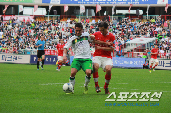 선제골은 부산의 몫이었다. 전북은 전반 5분만에 방승환에게 페널티킥 선제골을 헌납했다. 전반 20분 이동국의 PK골이 터졌다. 3경기 연속골로 1-1, 승부를 원점으로 돌렸지만 전반 30분 부산 꽃미남 공격수 한지호의 추가골이 터졌다. 부산 중원에선 베테랑 콤비 김한윤-이성운이 질기게 풀타임을 버텼다. 박종우-이종원의 공백을 깔끔히 메웠다. 전북은 후반 34분 에닝요의 동점골이 터질 때까지 마음을 졸여야 했다. 쫓기는 경기를 했다. 승점 3점을 노린 경기에서 승점 1점에 만족해야 했다. 그것도 극적인 무승부였다. 하마터면 질 뻔한 경기였다. 34라운드 직후 선두 서울의 승점은 73, 2위 전북은 69, 승점 1점을 더하는 데 만족해야 했다. 부산만 만나면 고전하는 이유에 대해 이 감독은 "역습적인 부분"이라고 털어놨다. "부산은 역습 면에 있어서만큼은 K-리그에서 가장 높은 수준이 아닌가 생각한다"며 이례적인 칭찬을 건넸다.
