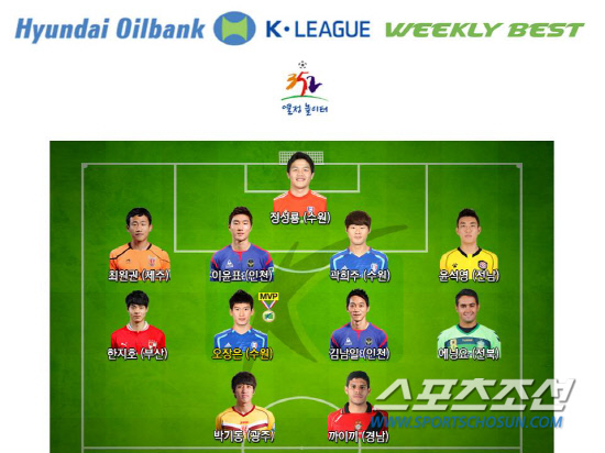 까이끼(경남)와 박기동(광주) 에닝요(전북) 김남일(인천) 한지호(부산) 윤석영(전남) 이윤표(인천) 최원권(제주)도 위클리 베스트11에 이름을 올렸다. 위클리 베스트팀은 전북과 2대2 무승부를 거두며 총점 6.1을 얻은 부산 아이파크가 선정됐다. 박상경 기자 ppark@sportschosun.com