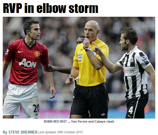 문제는 경기 후 발생했다. 영국 일간지 더선은 8일 '앨런 파듀 뉴캐슬 감독이 판페르시가 고의 가격 행위로 징계를 받아야 한다고 주장하고 나섰다'고 전했다. 판페르시가 그라운드를 질주하는 과정에서 뉴캐슬의 요앙 카바예의 얼굴을 팔꿈치로 가격했다는 것이다. 파듀 감독은 "판페르시는 카바예를 봤음에도 그를 팔꿈치로 치고 갔다. 다른 사람이 눈치채지 못할 정도로 교묘한 장면에서 일이 벌어졌다"고 말했다. 그는 "처음에는 나도 장면을 제대로 보지 못했지만, 카바예의 주장과 비디오 화면을 확인해 본 결과 분명히 판페르시가 팔꿈치로 카바예를 가격했다"고 목청을 높였다. 뉴캐슬-맨유전 주심으로 나선 하워드 웹 심판은 곧 잉글랜드축구협회(The FA)에 출석해 당시 상황에 대한 의견을 진술할 예정이다.