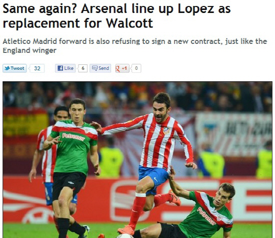 14일(한국시각) 영국 주간지 더피플은 아스널이 시오 월컷의 대체자로 아드리안 로페스(아틀레티코 마드리드)를 노리고 있다고 보도했다. 월컷은 아스널과 재계약을 원하고 있다는 발언과 달리 아직까지 재계약 서명을 하지 않고 있다. 아스널로서는 그의 부재에 대한 고민을 하지 않을 수 없는 상황이다.