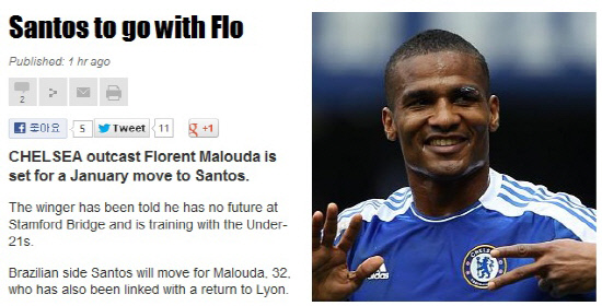 첼시의 미드필더 플로랑 말루다(32)가 결국 산투스 유니폼을 입을 것으로 보인다.