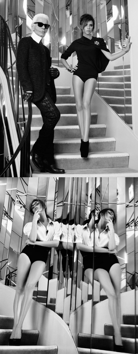 럭셔리한 감각의 란제리룩 포즈에서 사진의 주인공이 네 아이의 엄마라고 믿어지지 않는다. 유명한 거울 계단 위에서 에레스 언더웨어에 랑방 스웨터를 걸치고 샤넬 디자이너 카를 라거펠트와 함께 포즈를 취한 사진은 독특한 아우라를 뿜어낸다.