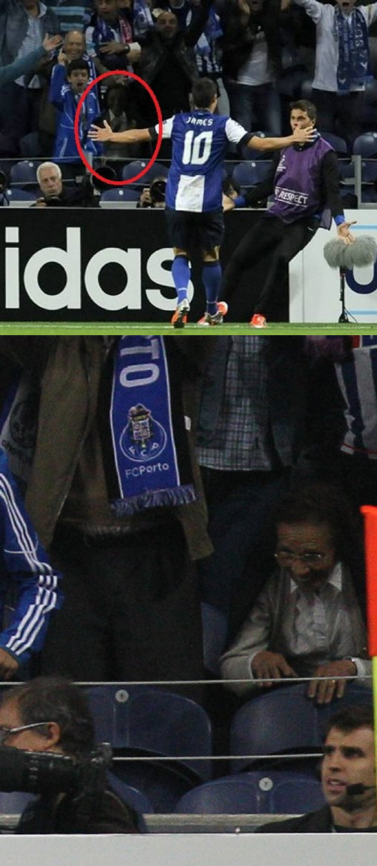 후반 37분 결승골을 넣고 환호하는 제임스 로드리게스(포르투) 오른팔 부분 관중석에서 어둡고 희미한 사람 형체가 섬뜩하게 웃으며 손뼉을 치고 있다. 언론들은 "이 형체가 이 구장에 자주 출몰하는 유령"일지 모른다며 구장 이름을 따서 '드래곤의 유령'(ghost Dragao)이라고 명명하기도 했다.