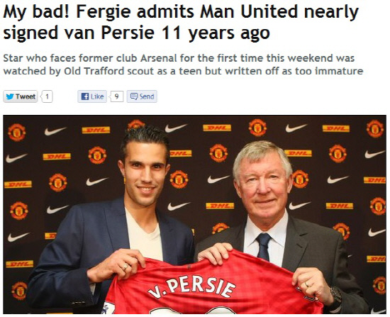 3일(한국시각) 영국 일간지 데일리미러는 알렉스 퍼거슨 감독이 11년 전 판 페르시의 영입을 노린 적이 있다고 보도했다. 퍼거슨 감독은 2001년 네덜란드에 스카우트를 보내 판 페르시를 살펴보라고 지시했다. 짐 라이언 스카우트가 판 페르시의 경기를 관전했다. 그러나 판 페르시는 그 경기에서 좋지 않은 모습으로 퇴장당했다. 지금은 많이 유해졌지만, 당시만 해도 판 페르시는 엄청난 악동이었다. 라이언 스카우트는 판 페르시가 놀라운 재능을 지녔지만, 성격에 문제가 있다고 보고했다.