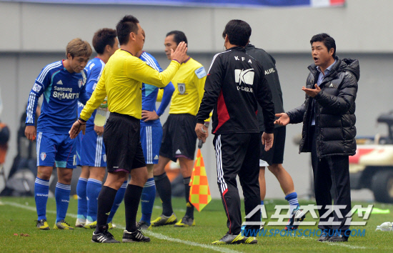 윤 감독과 수원 선수단은 정조국의 동점골이 성공된 직후 심판진에 강하게 어필을 하면서 오프사이드를 주장했다. 윤 감독은 이에 앞서 수원의 파울 선언이 될 때마다 다소 흥분한 듯 제스쳐를 취하면서 심판 판정에 대한 불만을 숨기지 않았다. 이에 대해 윤 감독은 "경기를 봤으면 그럴 만한 상황이 있다고 알 수 있을 것"이라면서 "동점골 상황에선 (양팀에) 희비가 갈리는 부분이 있다. 가만히 있을 수는 없는 법"이라고 말했다. 선수들이 벤치로 잠시 몰려갔던 장면에 대해서는 "선수들에게 철수하라고 하지는 않았다. 실점 상황을 물어본 것이었다. 상황을 들은 뒤 빨리 그라운드로 들어가 경기를 하자는 이야기를 했다"고 설명했다.