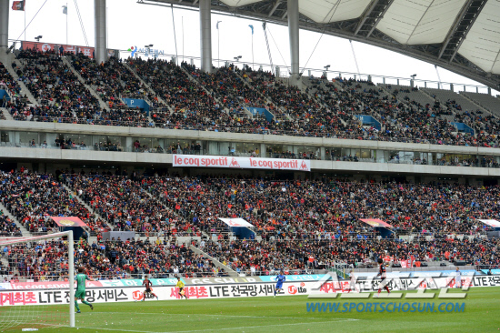 경기 시작 2시간 전까지만 해도 우려가 컸다. 쌀쌀한 날씨와 비 예보에 슈퍼매치의 열기가 식는 듯 했다. 슈퍼매치서 매번 채워지던 서울월드컵경기장 1층이 경기 시작 1시간 전까지 빈 자리가 눈에 띌 정도였다. 홈 팀인 서울 구단 뿐만 아니라 축구계 관계자들조차 초조함을 감추지 못했다. 슈퍼매치는 K-리그 뿐만 아니라 한국 축구 흥행의 척도이기 때문이다.