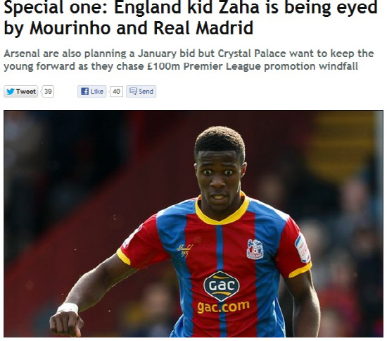 '잉글랜드의 원더키드' 윌프레드 자하(크리스탈 팰리스)의 주가가 폭등하고 있다.