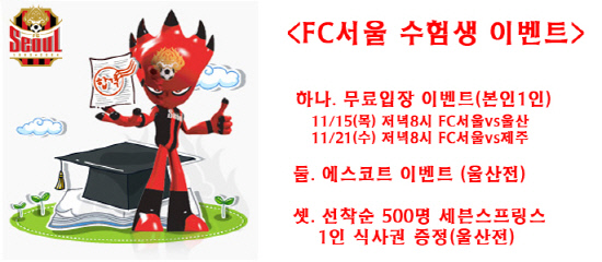 FC서울이 최근 대입 수학능력시험을 치른 수험생들을 위해 다양한 이벤트를 마련했다.