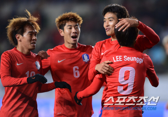한국은 높은 볼 점유율을 보이며 파상공세를 펼쳤다. 한국은 후반 13분 김형범 대신 '장신 공격수' 김신욱을 투입해 공중볼 장악에 나섰다. 후반 26분에는 왼쪽 측면에서 올린 이승기의 크로스를 페널티박스 정면에서 황진성이 쇄도하며 헤딩 슛을 날렸지만 골키퍼 정면으로 향했다. 후반 30분에는 페널티박스 정면에서 김신욱 헤딩으로 떨궈준 패스를 이동국이 왼발 슛을 날렸지만 또 다시 골키퍼 정면에 안겼다.