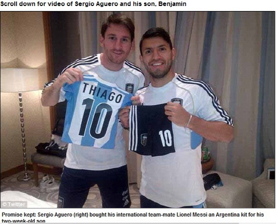 메시와 친한 사이인 아게로는 메시의 득남을 축하하기 위해 다양한 선물을 고민하다가 유니폼을 주기로 했다며 자신의 트위터에 올린 바 있다.