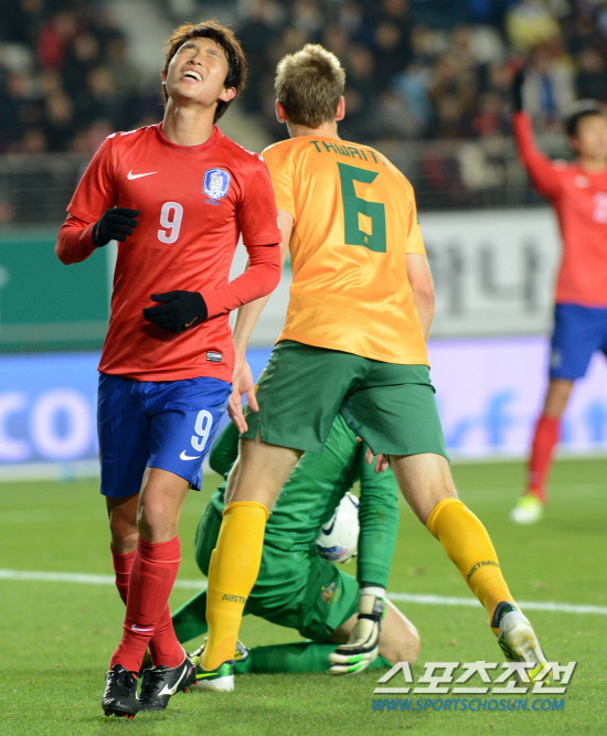 최강희 감독이 이끄는 A대표팀이 14일 경기 화성종합경기타운 주경기장에서 호주와 평가전을 가졌다. 이승기가 슛팅을 실패한 후 아쉬워하고 있다. 화성=허상욱 기자 wook@sportschosun.com